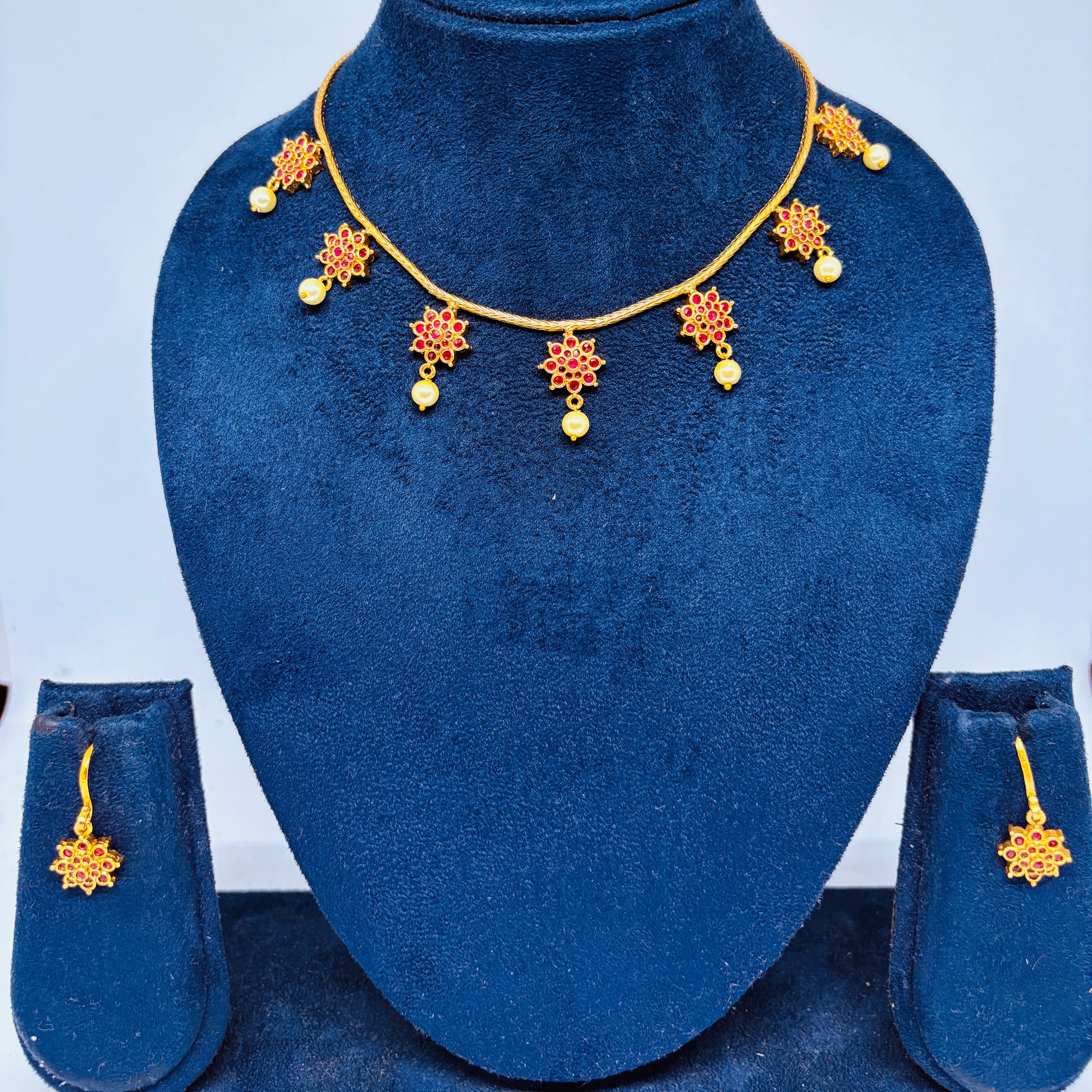 Elevate your style with Aarohi - a simple yet elegant chain paired with delicate drop earrings. Perfect for any occasion, this set will add a touch of sophistication to any outfit. Upgrade your accessory game with Aarohi and make a statement with every wear.