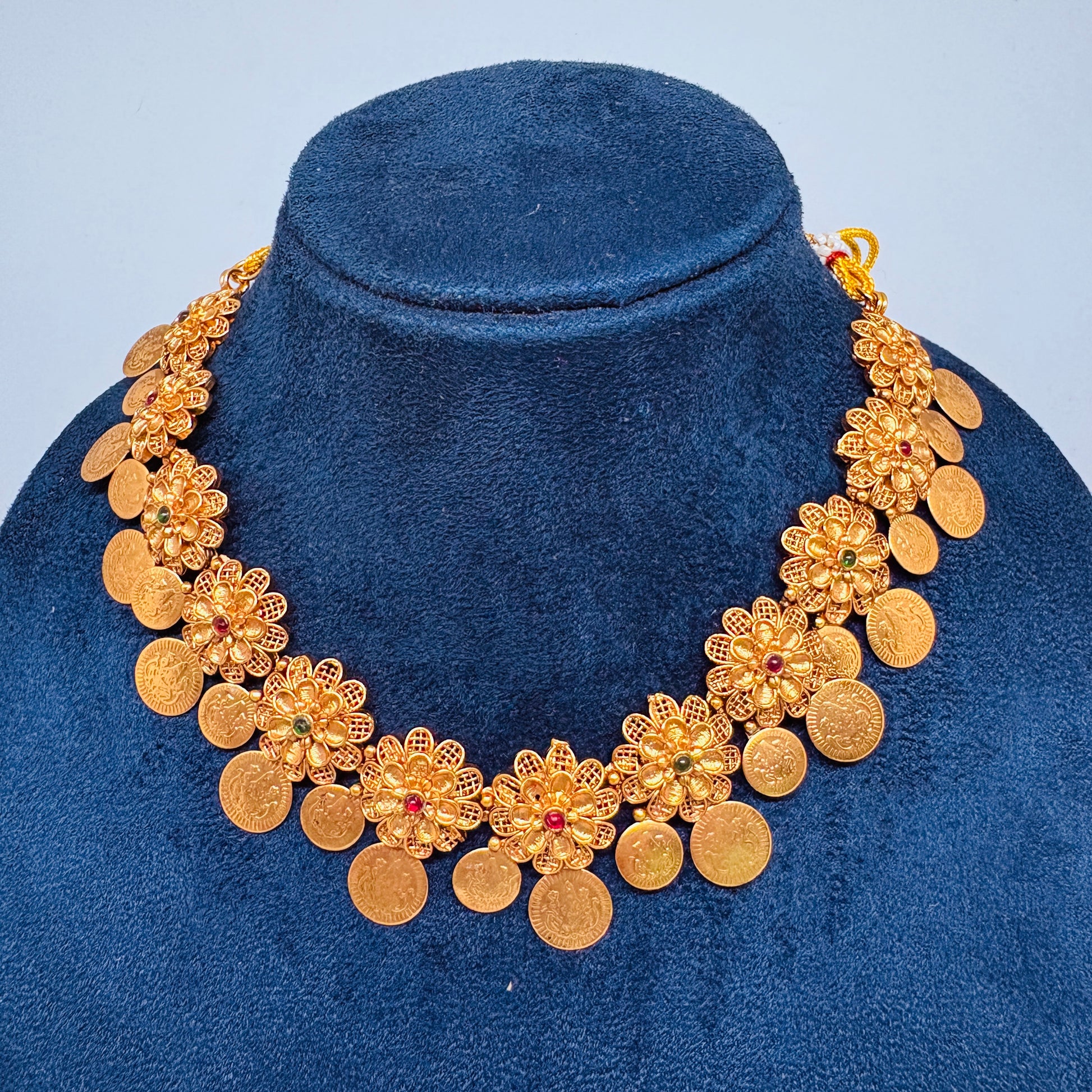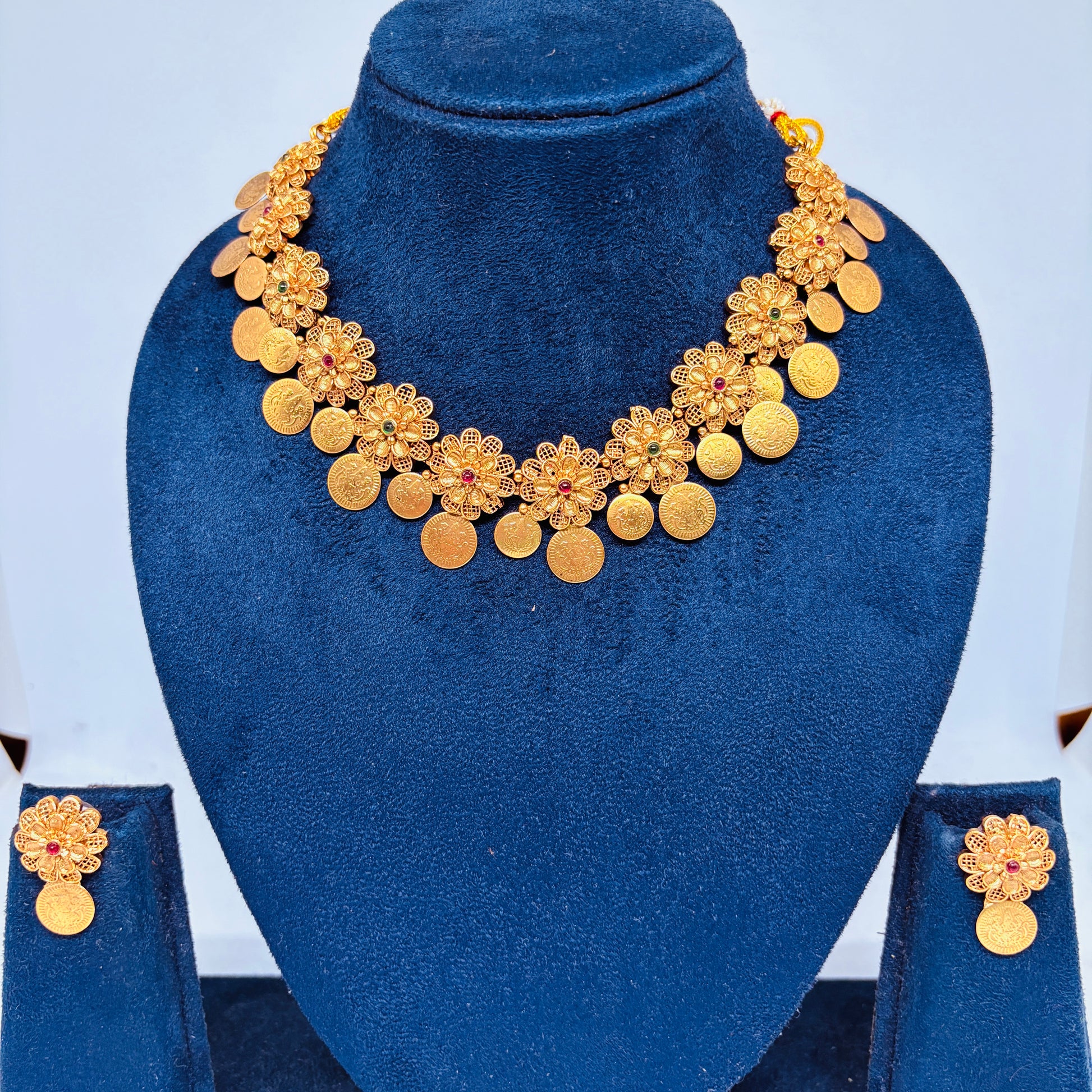 Make a statement with Sarangi, a modern yet traditional necklace that comes with matching earrings. Elevate your look with its unique design and add a touch of elegance to any outfit. Perfect for any occasion, this set is sure to make a beautiful statement.
