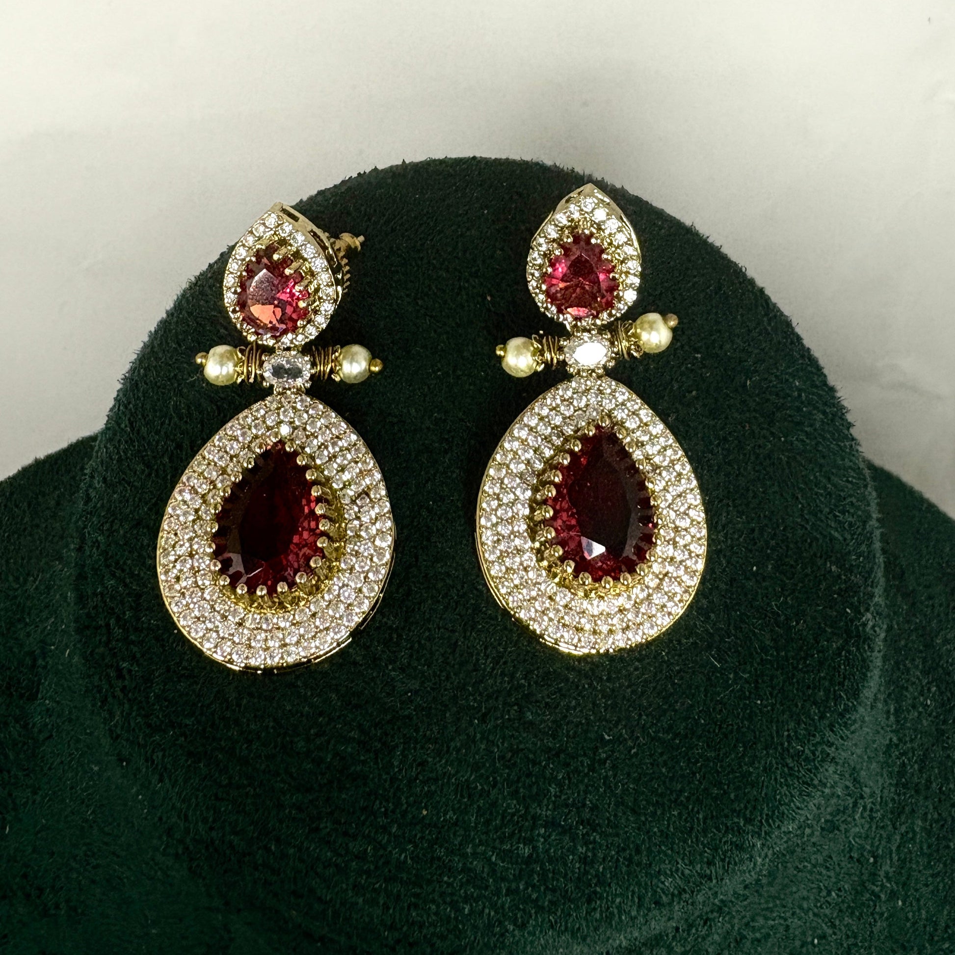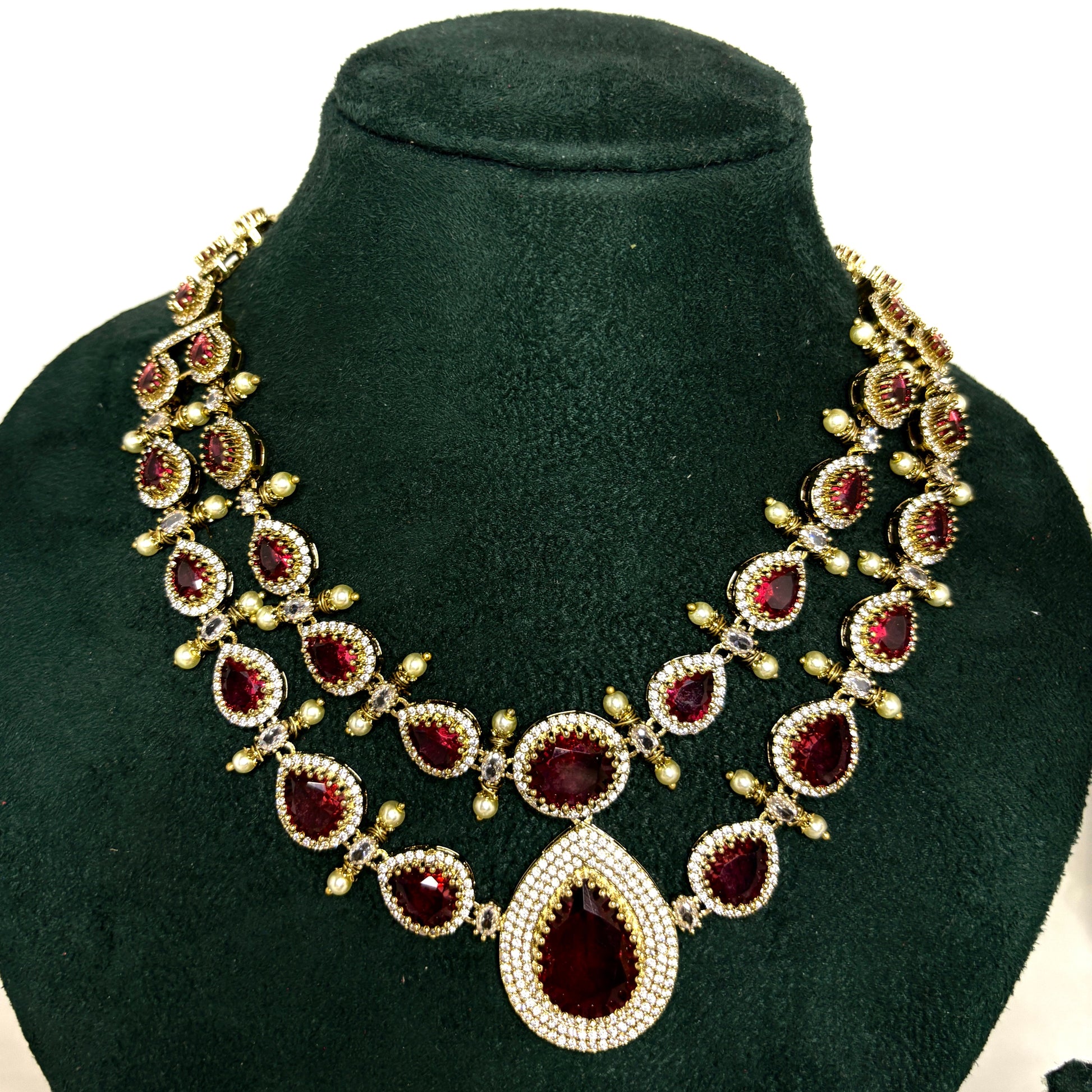 Indulge in the exquisite beauty of our Premium Victoria Necklace set. This stunning two-layer necklace is meticulously crafted and adorned with dazzling AD (American Diamond) stones that capture the light with every movement. The intricate design and premium finish exude sophistication and timeless elegance. The set is complete with a pair of equally stunning earrings, creating a cohesive and glamorous look. Perfect for adding a touch of luxury to weddings, parties, and special occasions.